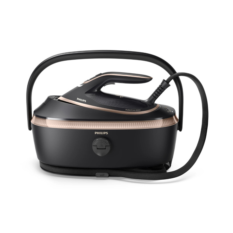 Компактний парогенератор Philips PerfectCare серії 8000 із розумним датчиком руху та технологією OptimalTEMP. Забезпечує до 210 г/хв постійної пари та паровий удар до 850 г, має знімний резервуар на 1,4 л і підошву SteamGlide Elite для легкого ковзання. Передбачено автоматичну подачу пари, вертикальне відпарювання, автовимкнення та зручну ручку для перенесення.