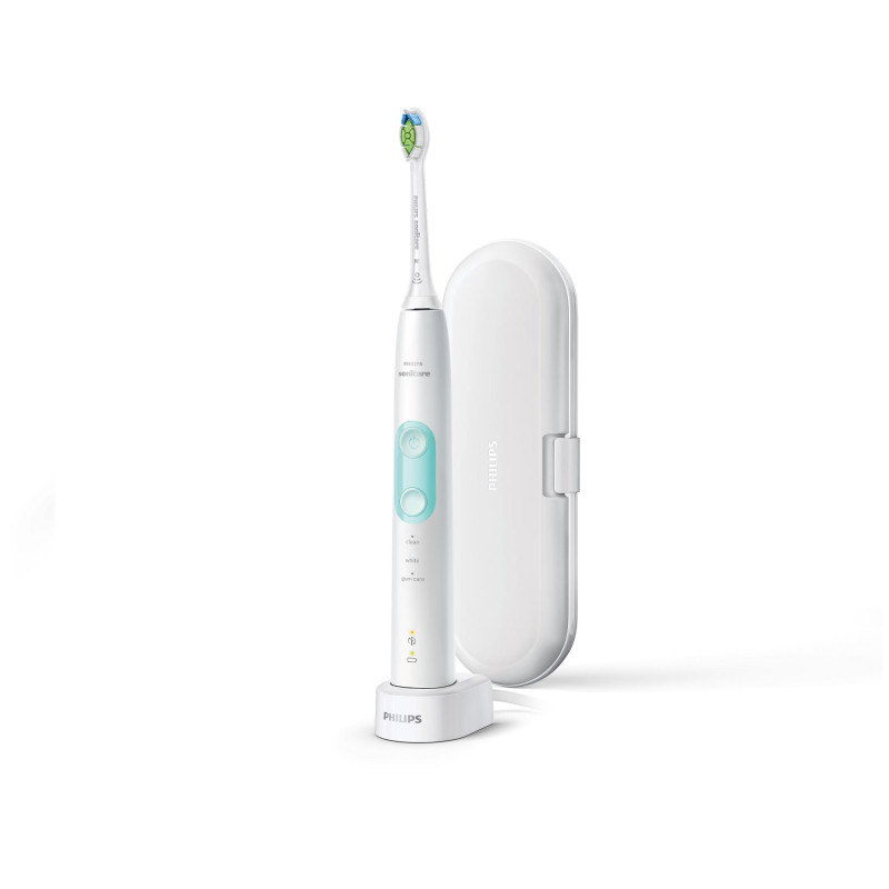 Philips ProtectiveClean 5100 – електрична зубна щітка, що поєднує ефективність та комфорт. Завдяки швидкості до 62 000 рухів на хвилину вона дбайливо очищує зуби й ясна, зменшуючи ризик карієсу та утворення нальоту. Три режими – стандартне чищення, турбота про ясна та відбілювання – дозволяють підібрати оптимальний варіант догляду. Вбудований датчик тиску запобігає надмірному натисканню, а таймери QuadPacer і SmarTimer допомагають дотримуватися правильного часу чищення.