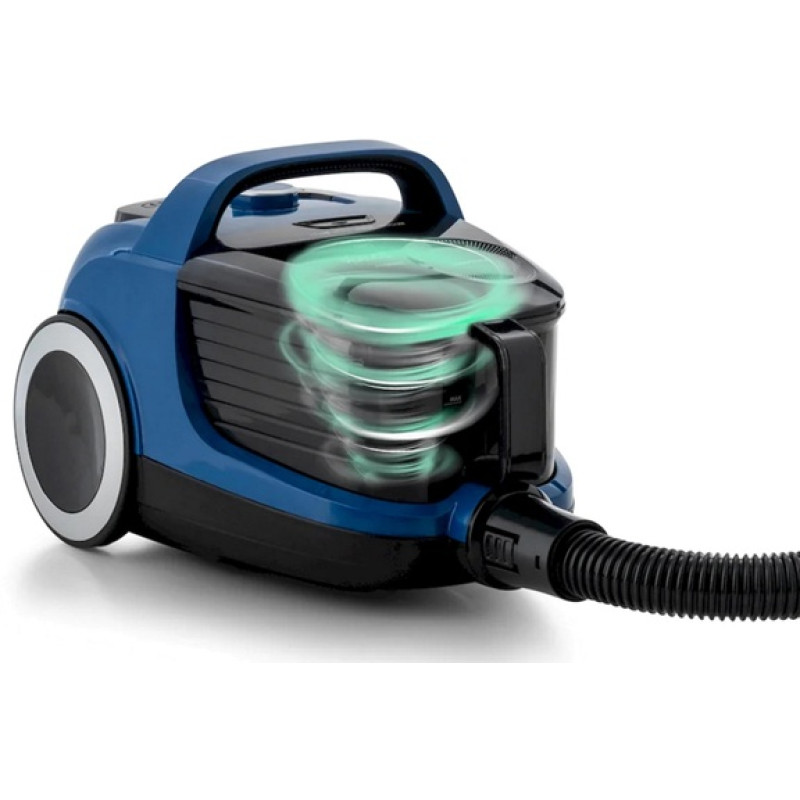 Контейнерна система збору пилу виключає необхідність у змінних мішках, роблячи використання економнішим і практичнішим. Об’єм 3,3 л дозволяє прибирати довше без частого очищення. Рівень шуму становить 84 дБ(А), що є оптимальним для приладів такої потужності.