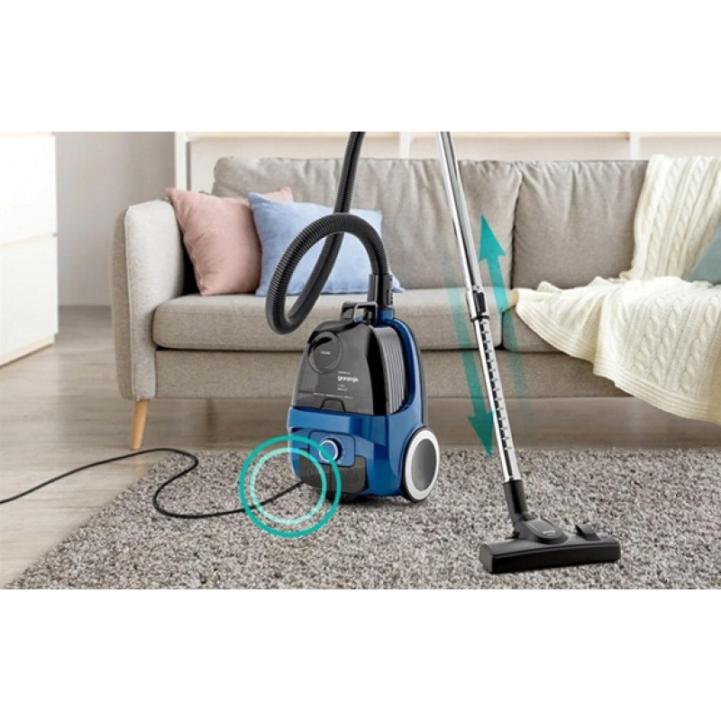 Модель обладнана телескопічною металевою трубкою довжиною 86 см і гнучким шлангом, що гарантує свободу рухів. Поворотна ручка робить процес прибирання більш ергономічним. Довгий кабель на 7 м і радіус дії 9 м дозволяють охопити велику площу без постійного перемикання розеток.