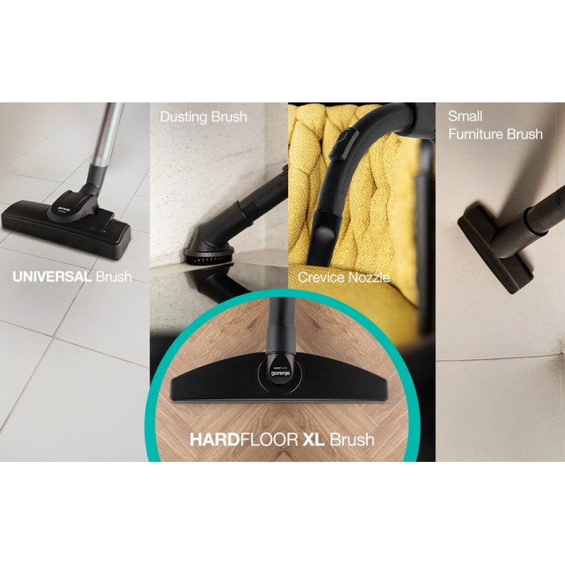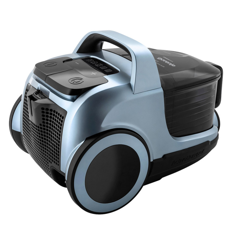 Об’ємний пластиковий контейнер на 3.3 л легко знімається і очищується, що робить експлуатацію економічною та гігієнічною. Пилосос має три гумові колеса для маневреності, а також вертикальне та горизонтальне положення для зберігання. Додатковий захист від перегріву та захисний гумовий бампер (Active Bumper) забезпечують безпеку техніки та довговічність використання.