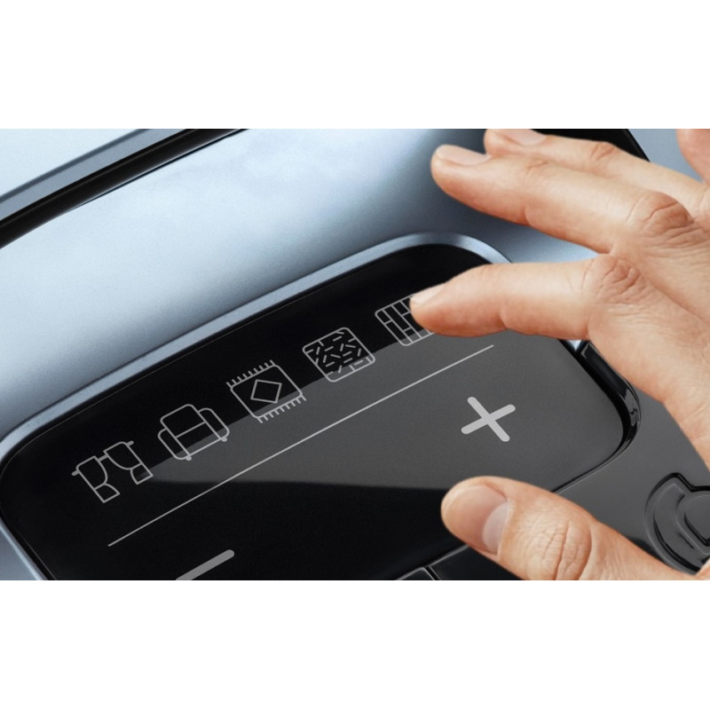Прилад обладнаний сенсорним управлінням та ергономічною ручкою з гумовим покриттям для комфортного захвату. Телескопічна алюмінієва труба та гнучкий шланг дозволяють легко діставати до важкодоступних місць. Довжина кабелю 7 м та радіус дії до 9 м забезпечують свободу рухів без частого перемикання розетки.