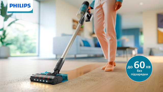 Оцініть ретельне прибирання підлогових покриттів одним рухом з бездротовим пилососом Philips серії 3000. Насадка зі світлодіодним підсвічуванням допоможе помітити навіть прихований пил і бруд і зібрати їх за допомогою технології PowerCyclone 8. До 60 хвилин роботи без підзарядки для простого та зручного прибирання будинку.