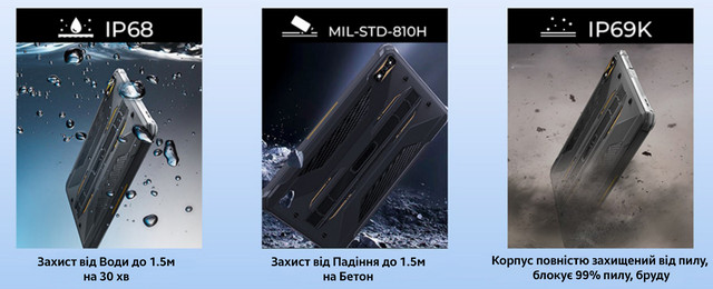 Стандарт захисту | IP68, IP69K, MIL-STD-810H |
