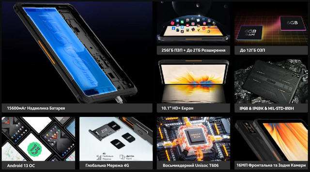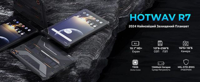 HOTWAV R7 – новий планшет, де поєднується потужність та міцність з естетикою дизайну. Кожен елемент виділяється по-своєму, що залишити вас байдужим. Зі своїм захистом за стандартами IP68, IP69K, MIL-STD-810H і потужним акумулятором ємністю 15600 мАг, міцний планшет HOTWAV R7, ймовірно, значно перевершує більшість інших захищених планшетів з підтримкою 4G-LTE, доступних на ринку. З таким надійним та довговічним дизайном R7 стає ідеальним вибором для тих, хто шукає надійний пристрій для тривалого використання.