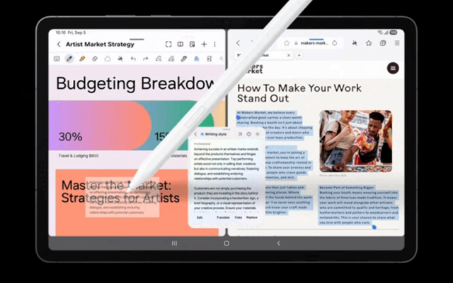 Writing Assist допомагає перетворити текст на точне відображення вашої ідеї. Планшет миттєво редагує чернетки, покращує стиль і тон, дозволяючи швидко створювати професійний контент. Перетягуйте оброблені тексти в потрібні додатки і отримуйте ідеально оформлені нотатки, листи або робочі документи без зайвих зусиль.