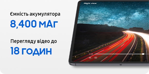 Акумулятор ємністю 8400 мА·год забезпечує до 18 годин відтворення відео, підтримуючи інтенсивну роботу протягом усього дня. Підтримка швидкої зарядки потужністю 45 Вт дозволяє за короткий час відновити заряд, щоб планшет знову був готовий до активної роботи або розваг.