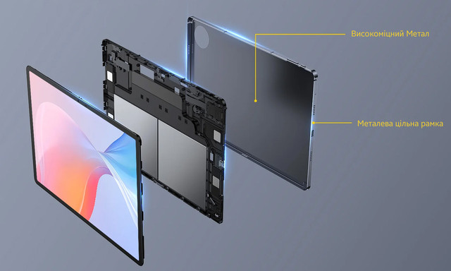 Tab A11 виконаний із високоякісного алюмінієвого сплаву авіаційного класу, що надає планшету виняткову міцність і легкість. Завдяки цьому матеріалу планшет витримує щоденне використання, залишаючись портативним і зручним для транспортування. Така конструкція дозволяє пристрою витримувати випадкові падіння і механічні пошкодження, зберігаючи свою функціональність.