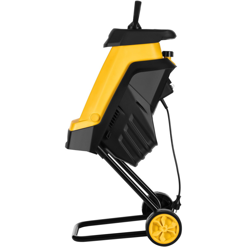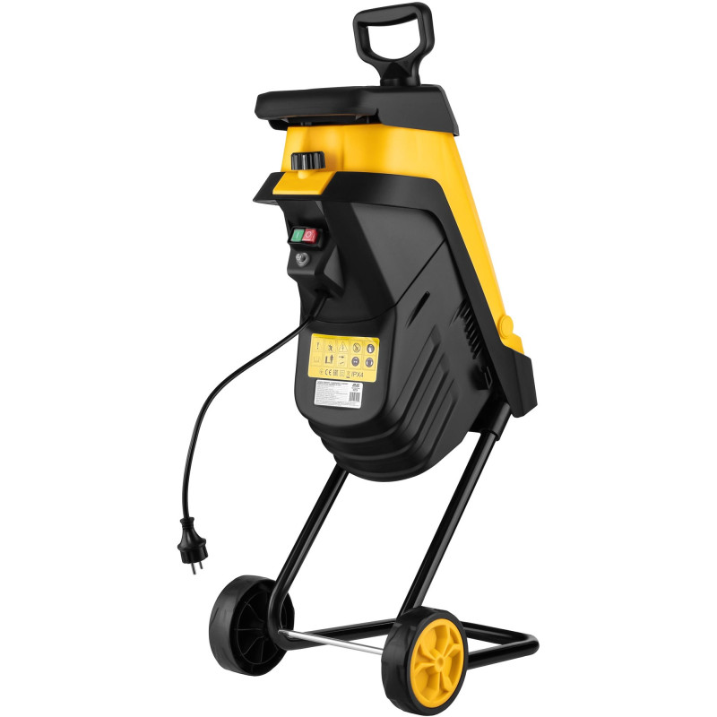 Надійний подрібнювач для саду Подрібнювач призначений для подрібнення рослинних відходів, таких як невеликі гілки, суччя, стовбури молодих дерев, листя, трава. Допомагає утилізувати садове сміття, перетворюючи його на корисну сировину для компосту або мульчі. Потужний та ергономічний Потужний мотор 2400 Вт та ножова ріжуча система садового подрібнювача здатні з легкістю подрібнити гілки діаметром до 40мм. Завдяки колесам перемістити подрібнювач набагато комфортніше та легше.