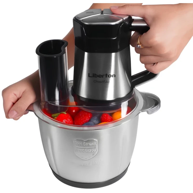 Подрібнювач Liberton LEG-1502 поєднує у собі функціональність кухонного комбайна та зручність компактного приладу. Завдяки потужному двигуну на 600 Вт і чаші з нержавіючої сталі обємом 3 літри, він легко справляється з великими обємами інгредієнтів.Продуктивність і функціональність4 леза з нержавіючої сталі ефективно подрібнюють як мякі, так і тверді продукти.3 швидкості + TURBO дозволяють підібрати оптимальний режим для кожного завдання.100% мідний двигун гарантує довговічність і стабільну роботу.Антиковзаюче дно забезпечує надійну стійкість під час роботи.Розширені можливостіКомплектація робить цей подрібнювач багатофункціональним кухонним інструментом:двосторонній диск-шинковка/терка;диск для дерунів;насадка для збивання омлету;насадка для чищення часнику;лопатка для очищення.ПрактичністьКорпус із нержавіючої сталі та пластику виглядає сучасно й легко миється. Завдяки компактним розмірам (292525 см) та вазі лише 1,7 кг, пристрій зручно зберігати навіть на невеликих кухнях. Характеристики Liberton LEG-1502Тип: подрібнювачПотужність: 600 ВтДжерело живлення: мережа 220 ВМатеріал корпусу: нержавіюча сталь + пластикМатеріал чаші: нержавіюча стальОбєм чаші: 3 лЛеза: 4 шт., нержавіюча стальКількість швидкостей: 3 + TURBOКерування: електронне з дисплеємОсобливості: антиковзаюче дно, мідний двигунНасадки: шинковка/терка, терка для дерунів, насадка для омлету, насадка для часникуКомплектація: подрібнювач, насадки, диск, лопатка, інструкція, гарантіяГабарити: 292525 смВага: 1,7 кг (в упаковці 1,9 кг)Колір: нержавіюча сталь + чорнийКраїна виробник: КитайКраїна бренду: УкраїнаГарантія: 12 місяців Liberton LEG-1502 — це універсальний подрібнювач із розширеною комплектацією, який замінить кілька кухонних приладів і допоможе швидко готувати страви щодня.