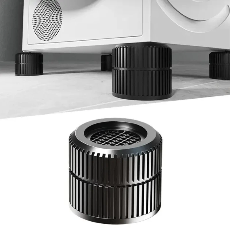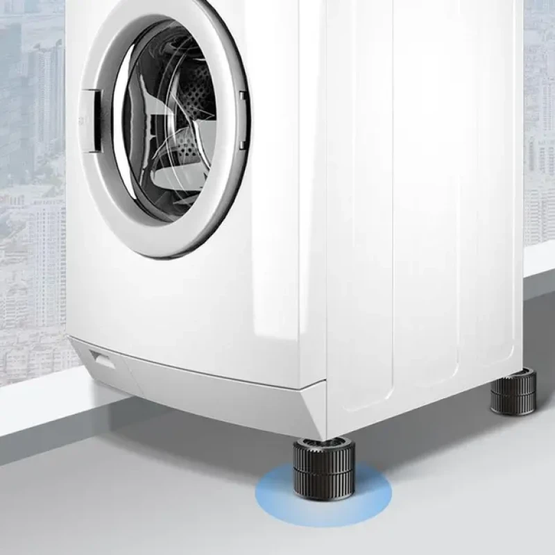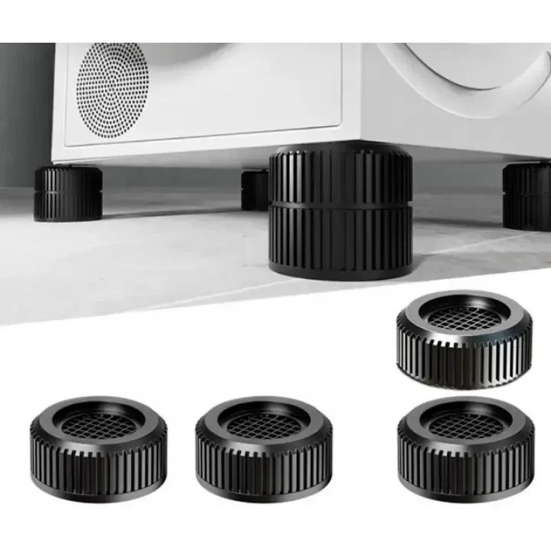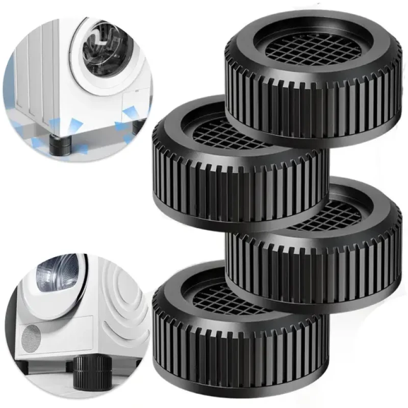 Універсальні силіконові підставки для пральних машин, що амортизують, запобігають вібрації на будь-якій підлозі і захищають поверхню підлоги, включаючи паркет, ламінат і плитку. Вони також піднімають машину на кілька сантиметрів, запобігаючи попаданню вологи та забезпечуючи кращу очистку.