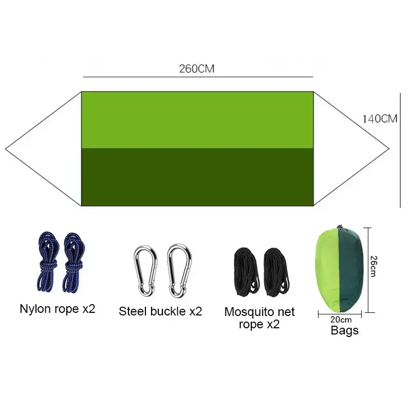 Підвісний гамак з москітною сіткою HIeha нейлоновий, з кишенею, повний комплект, зелений