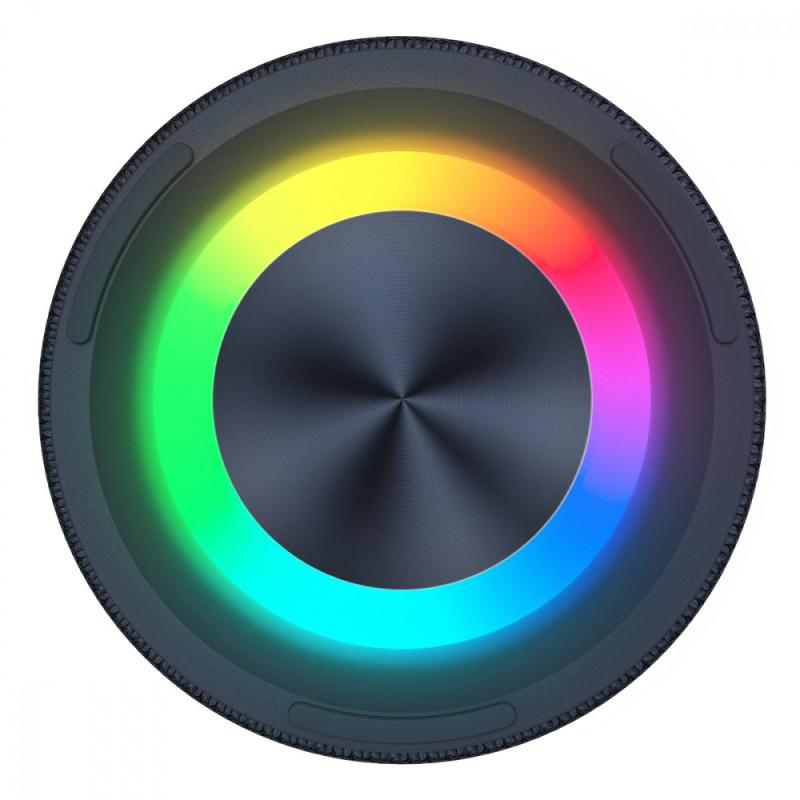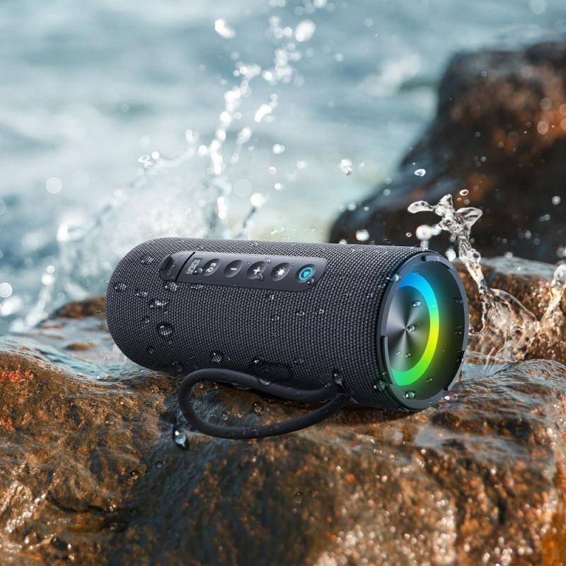 Мінімалістичний корпус з матового пластику стійкий до подряпин. Компактна форма з вбудованим RGB-підсвічуванням додає динаміки — колонка виглядає сучасно як удома, так і на природі.