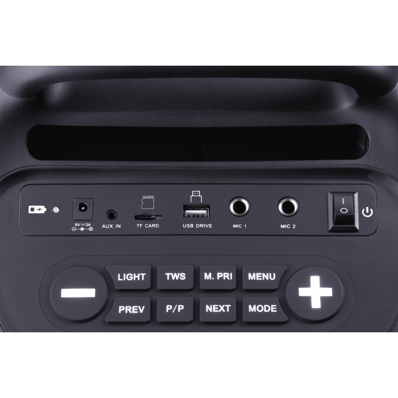 | Додаткові характеристики | Живлення: 230 В / 50 Гц, Aдаптер живлення, Li-Ion акумулятор; Тип елементів живлення: форм-фактор 18650, 3.7В, 1800мАгод – 4 шт (послідовно-паралельне з'єднання); Роз'єми: 6,3-мм джек x 2, AUX-аудіовхід, DC, Micro-SD, USB |
