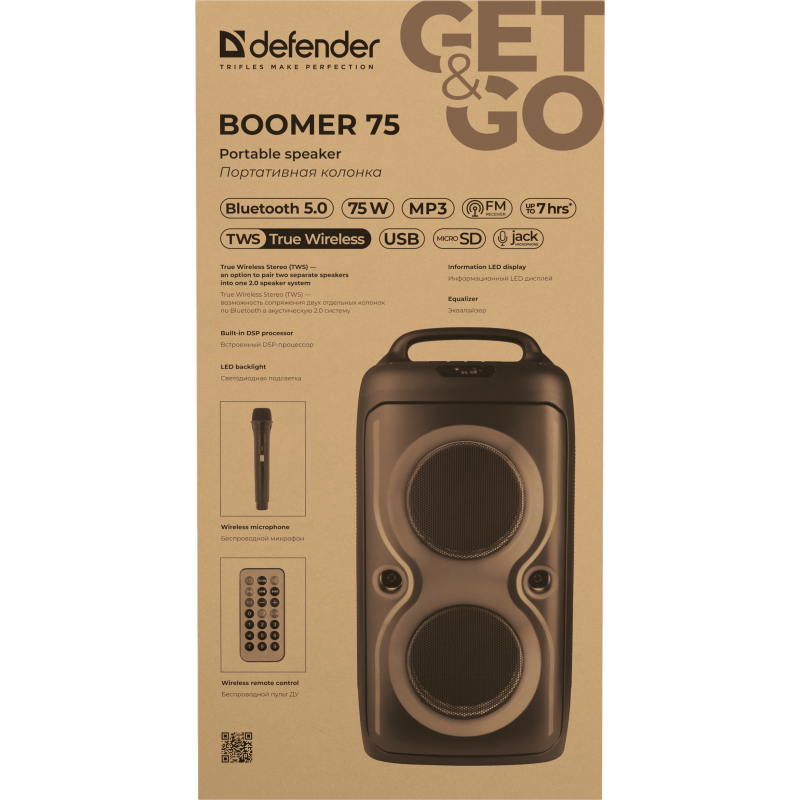 - True Wireless Stereo (TWS) - можливість сполучення двох окремих колонок по Bluetooth в акустичну 2.0 систему