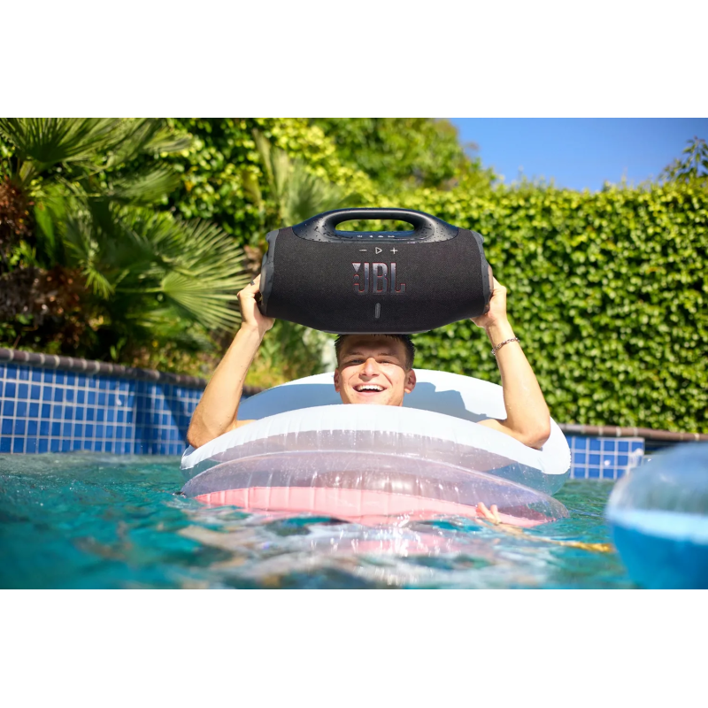 JBL Boombox 4 можна без страху брати будь-куди - їй не страшні ні вода, ні пив.