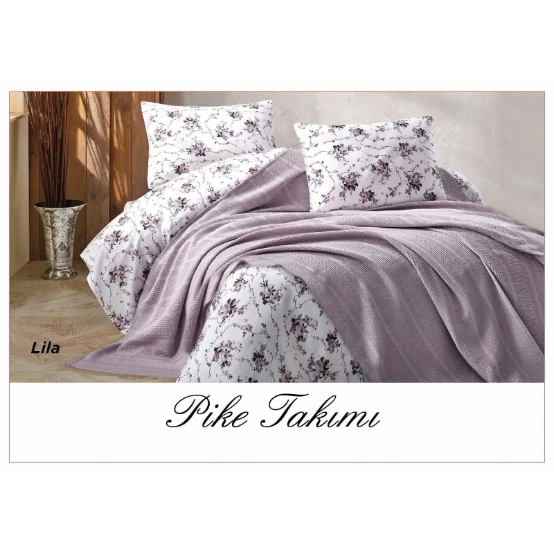 Дизайн постільної білизни від турецького бренду La Villa виконаний у приємному кольорі. Набір представлений в євро-розмірі і включає простирадла та наволочки 50х70 в кількості 2 шт. Замість підковдра є вафельне покривало, яким буде дуже зручно ховатися в літню пору року. За бажання його можна використовувати також як звичайне покривало, застилаючи ним ліжко або диван. На дотик воно досить приємне і нагадує щільне простирадло.