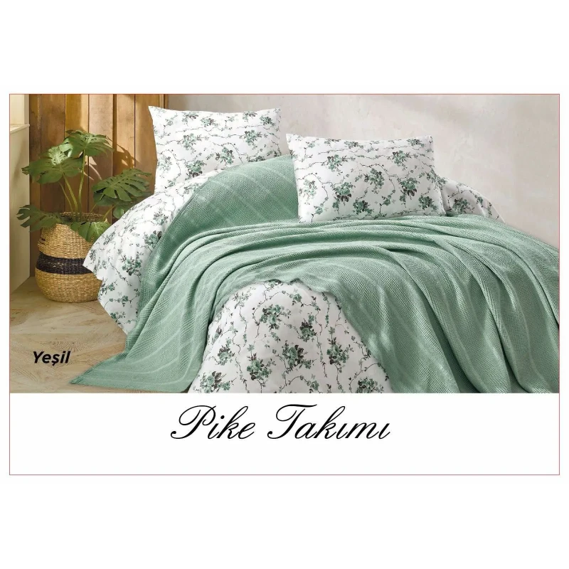 Дизайн постільної білизни від турецького бренду La Villa виконаний у приємному кольорі. Набір представлений в євро-розмірі і включає простирадла та наволочки 50х70 в кількості 2 шт. Замість підковдра є вафельне покривало, яким буде дуже зручно ховатися в літню пору року. За бажання його можна використовувати також як звичайне покривало, застилаючи ним ліжко або диван. На дотик воно досить приємне і нагадує щільне простирадло.