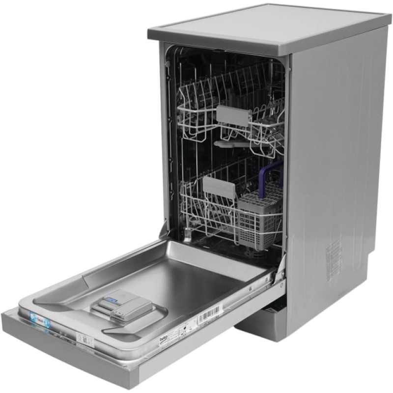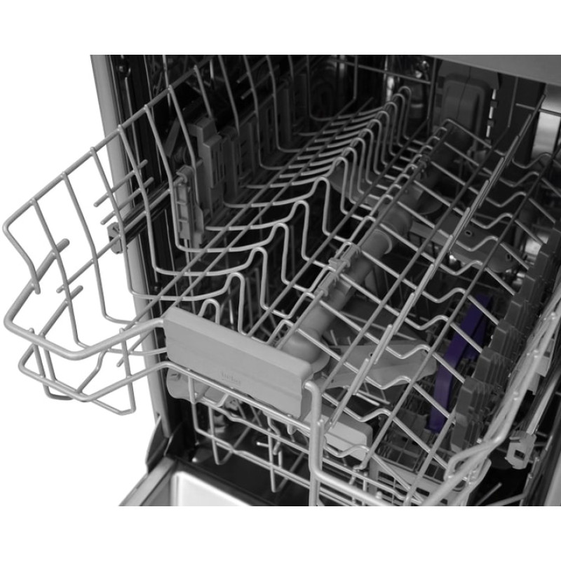 Верхній кошик легко регулюється за висотою і має три положення фіксації. Така конструкція дає змогу розмістити великі тарілки діаметром до 31 см у нижньому кошику.