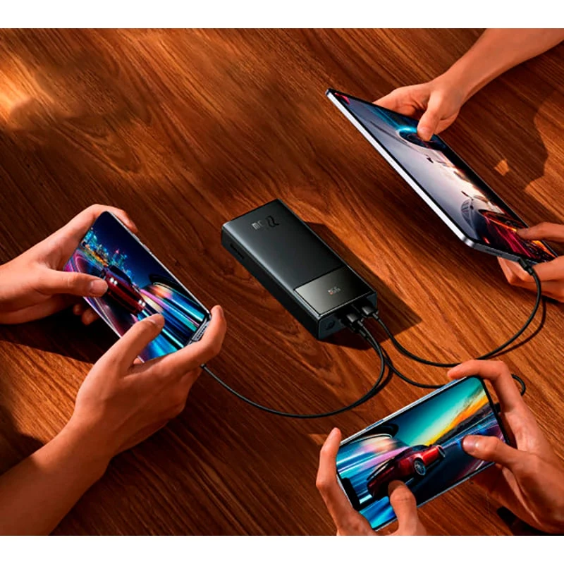 З кількома портами USB і USB Type-C, Baseus Star-Lord дає змогу одночасно заряджати кілька пристроїв, що робить його універсальним рішенням для всіх ваших зарядних потреб. Компактний і стильний дизайн робить його легким для перенесення, незважаючи на велику ємність батареї. Це робить його ідеальним для подорожей, робочих поїздок або просто як надійне джерело енергії в повсякденному житті.
