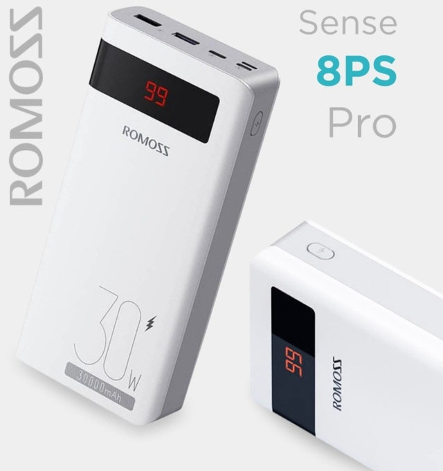 Повербанк Romoss Sense 8PS Pro покликаний забезпечити для користувача відчутний резерв енергії, який дає батарея 30 000 мАг. Швидка зарядка 30W, 3 вхідні + 3 вихідні інтерфейси, мала вага (675 г), дисплей-індикатор – техніка має все, що потрібно для комфортної експлуатації.