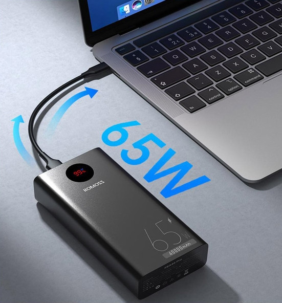 Модель об'єднала у собі найкращі розробки, що використовуються для створення УМБ. Маючи об'єм 40 000 мАг, Romoss PEA40 Pro стає ідеальним джерелом живлення для лептопів. Підтримка швидкого заряджання 65W суттєво прискорює процес енерговідновлення. У конструкції використаний чіп, що забезпечує сумісність з технікою Apple, а це суттєво розширює можливості девайсу.