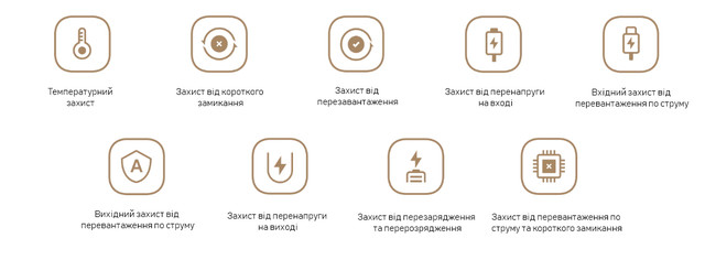 Пристрій обладнано дев'ятьма варіантами захисту як безпосередньо повербанка, так і під'єднаних пристроїв. Система захищає від температурних стрибків, короткого замикання, перенапруги, перевантаження за струмом, перезаряду та перерозряду. Захист від надструмів і короткого замикання доповнено підтримкою заряджання малими струмами: просто двічі натисніть кнопку перевірки акумулятора, щоб активувати режим заряджання малим струмом.