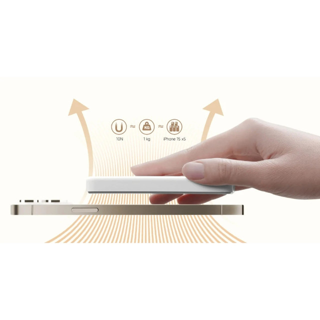 Powerbank має USB Type-C для стандартного та швидкого заряджання, а також підтримує бездротові технології MagSafe і Qi. Така універсальність робить його придатним для більшості сучасних ґаджетів.