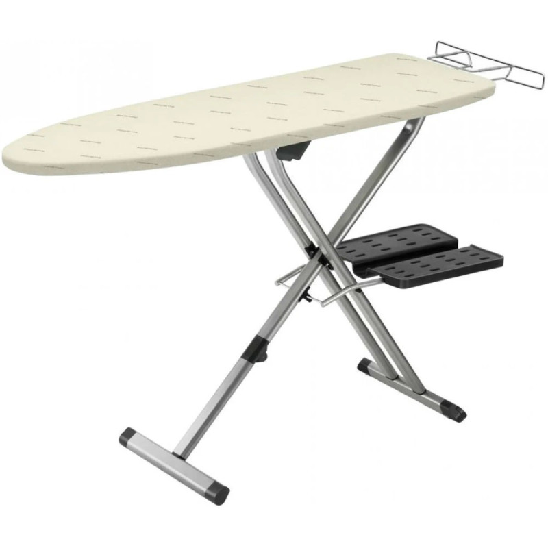 Прасувальна дошка Tefal IB9100E0 орієнтована на споживачів, яким необхідна побутова конструкція для прасування одягу з максимально нейтральним зовнішнім виглядом. Полотно світлого кольору, обтягуючі платформу, металеві сірі ніжки, чорні оздоблювальні деталі - все це гармонійно поєдналося воєдино, сформувавши завершений образ.