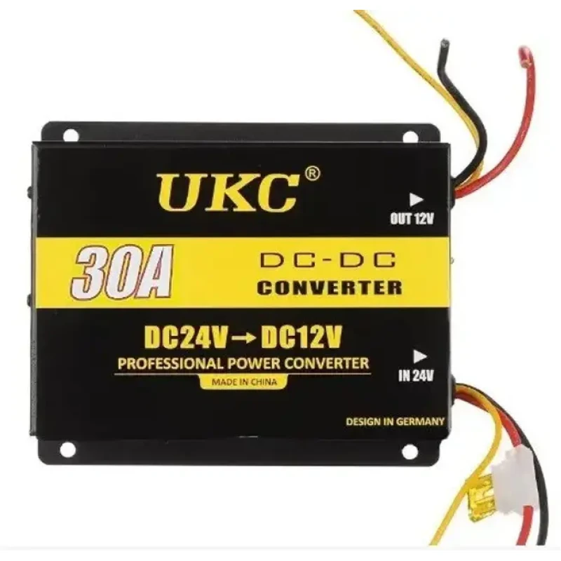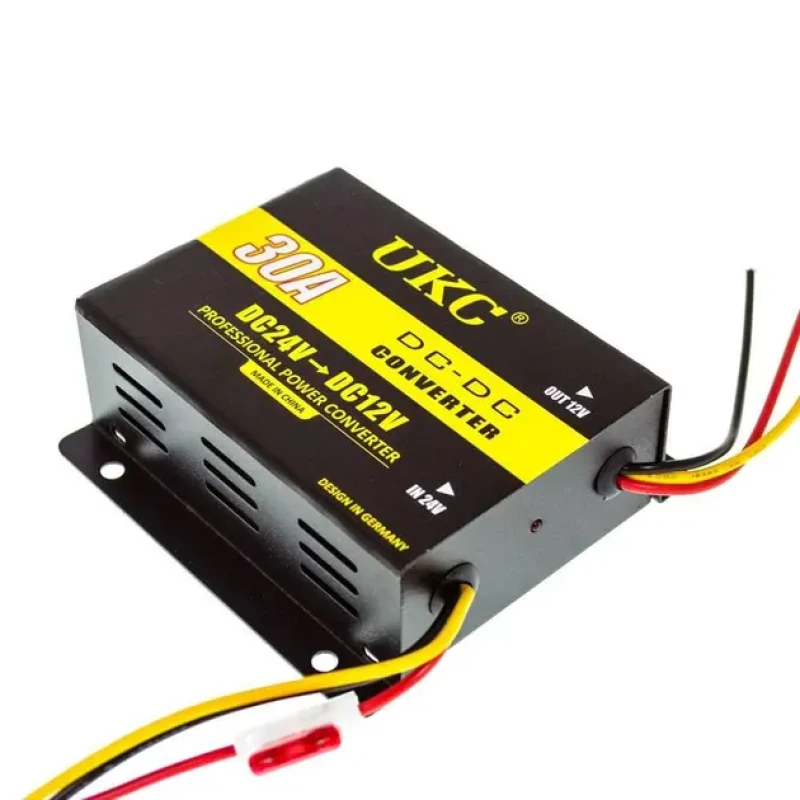 Прилад інвертора DC/DC 24v-12v 30A призначений для перетворення електрики з 24В на 12В. Дозволяє підключити навантаження до 360Вт. Наприклад: відеокамеру, телефон, ноутбук, різноманітну аудіо- та відеотехніку та інші електроприлади. Корпус виготовлений з металу, на задній частині розташовані дроти для підключення, а також світлові індикатори роботи. Прилад розрахований видачу до 20А. Область застосування: в автомобілі, катері, сонячних та вітрових електрогенераторах, для аварійної роботи і т.д.