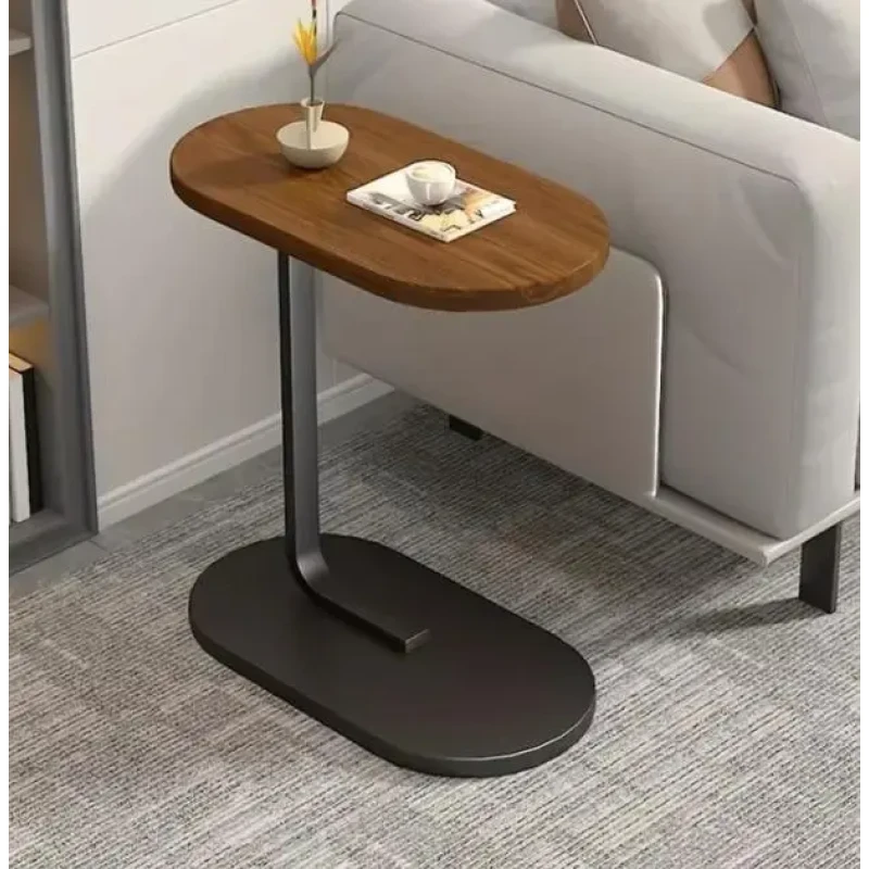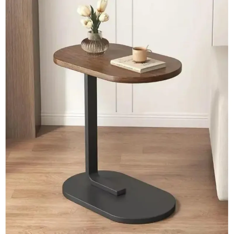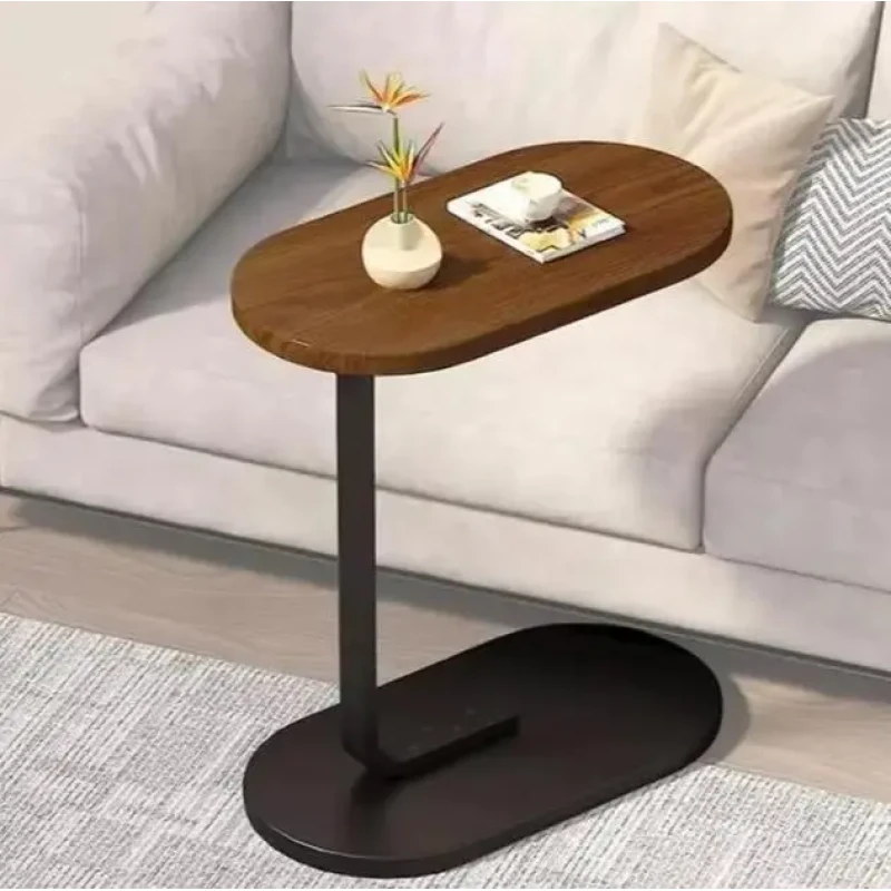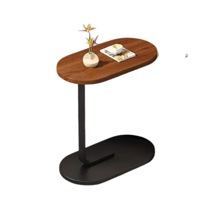 Приліжковий столик 28×45×60 см з овальною дерев'яною стільницею та металевою основою