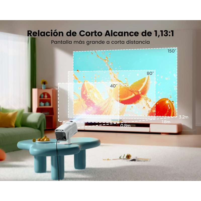 Проекційне відношення 1,13:1 і зум до 80%: Створюйте 100-дюймовий екран всього з 2,5 м! Підходить навіть для невеликих приміщень або наметів. За допомогою функції зуму можна легко зменшити розмір зображення зі 100% до 80%.