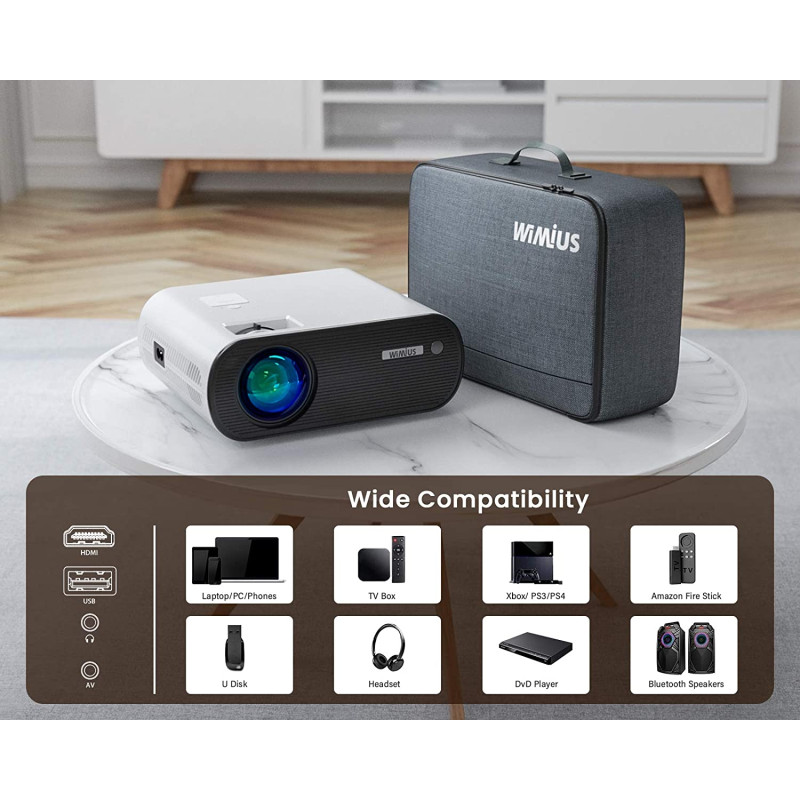 Цей новий проектор Wi-Fi Bluetooth Wimius K5 має яскравість 9500 ЛМ, максимальна роздільна здатність 1920x1080p, високий контраст у 15000: 1 та широкий спектр кольорів, які можуть забезпечити точність оригінального відео, щоб насолодитися фільмами, грати у відеоігри або зробити хороші вихідні.