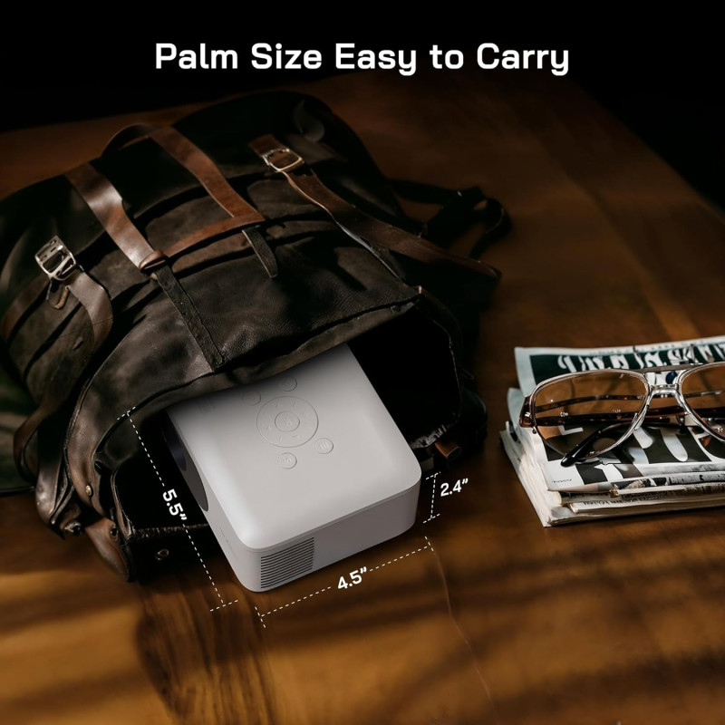 Міні-проектор WOLFANG WP02 виготовлений із міцного ABS-пластику та має стильний чорно-білий дизайн. Завдяки компактним розмірам та вазі всього 0.55 кг його зручно носити в рюкзаку під час подорожей, походів чи кемпінгу. Для використання на відкритому повітрі потрібне підключення до мережі змінного струму.