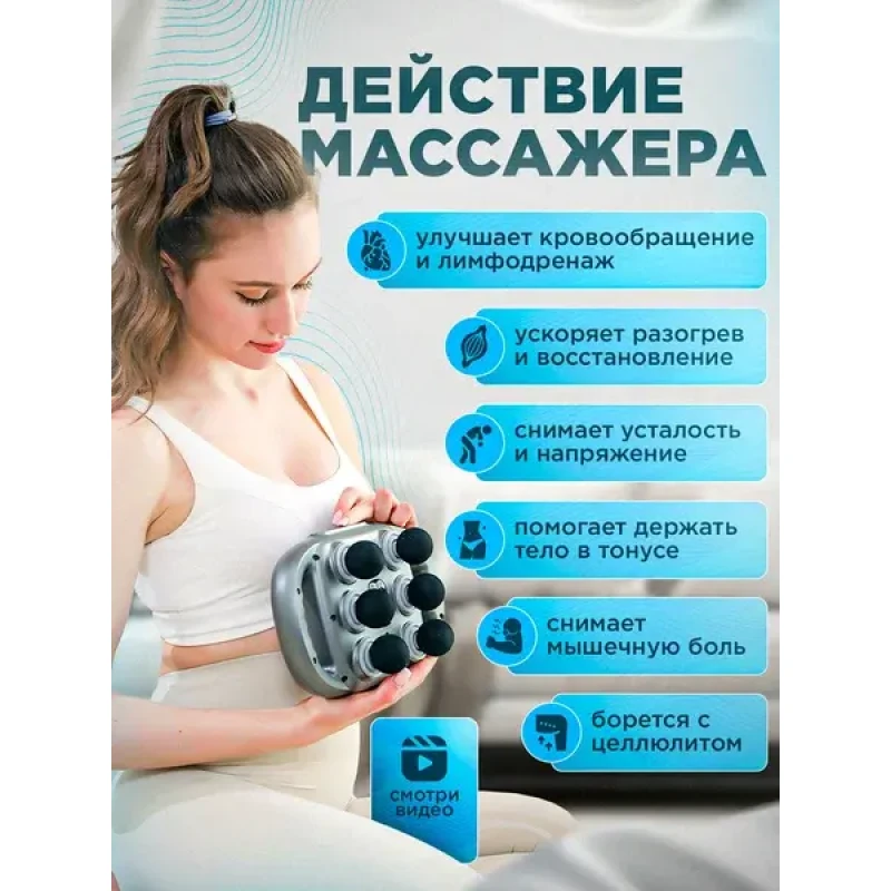З 6 масажними головками та 19000 ударів на хвилину, цей масажер забезпечує інтенсивний та ефективний масаж, дозволяючи звільнитися від напруги та стресу, зміцнити м'язи та покращити загальний стан тіла.