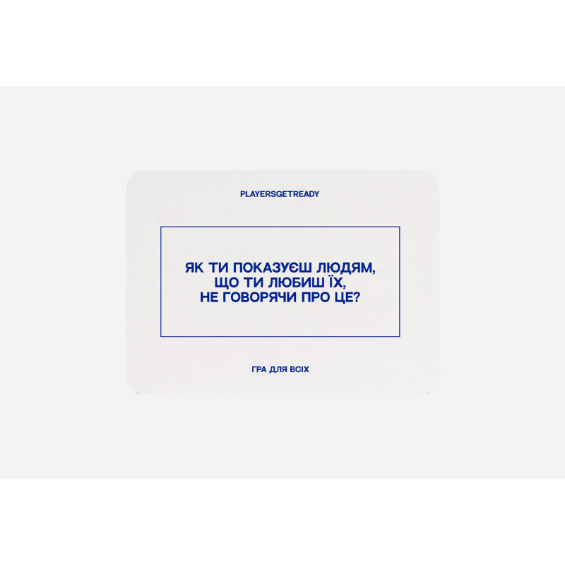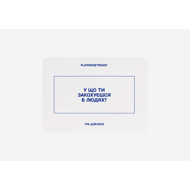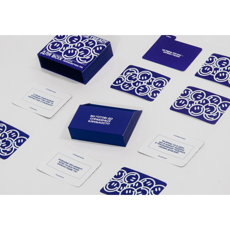 Психологічна гра для всіх — це 60 карток із запитаннями і діями, розроблених психологом. Розмовна гра для тих, хто давно знає одне одного і для тих, хто хоче познайомитись. Вона для побачень, вечірок, посиденьок. На випадок, коли хочеш провести час за цікавим душевним діалогом, але не знаєш з чого почати