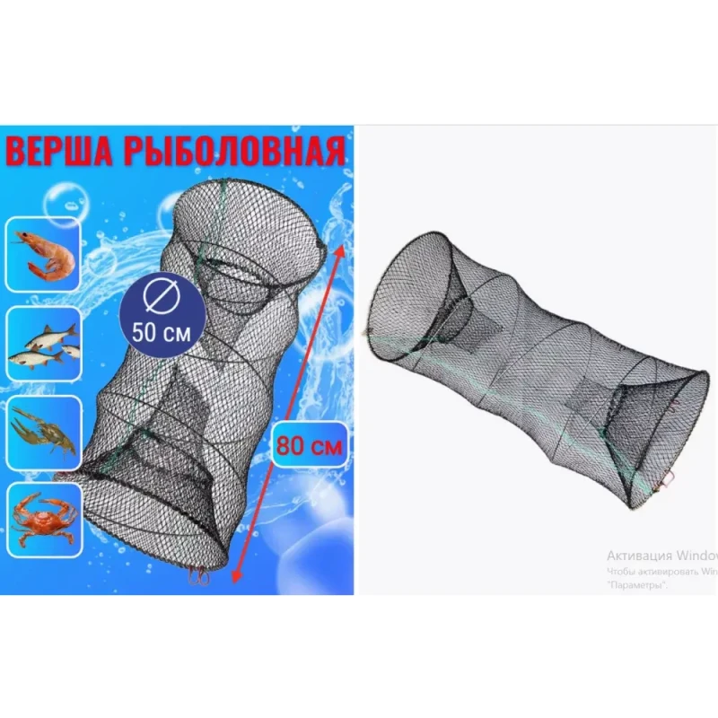 Верша рибальська виготовлена з пружинного спірального дроту та обтягнута дрібною пористою поліпропіленовою сіткою.