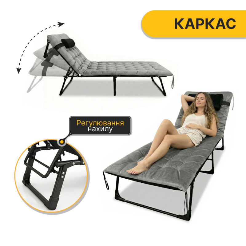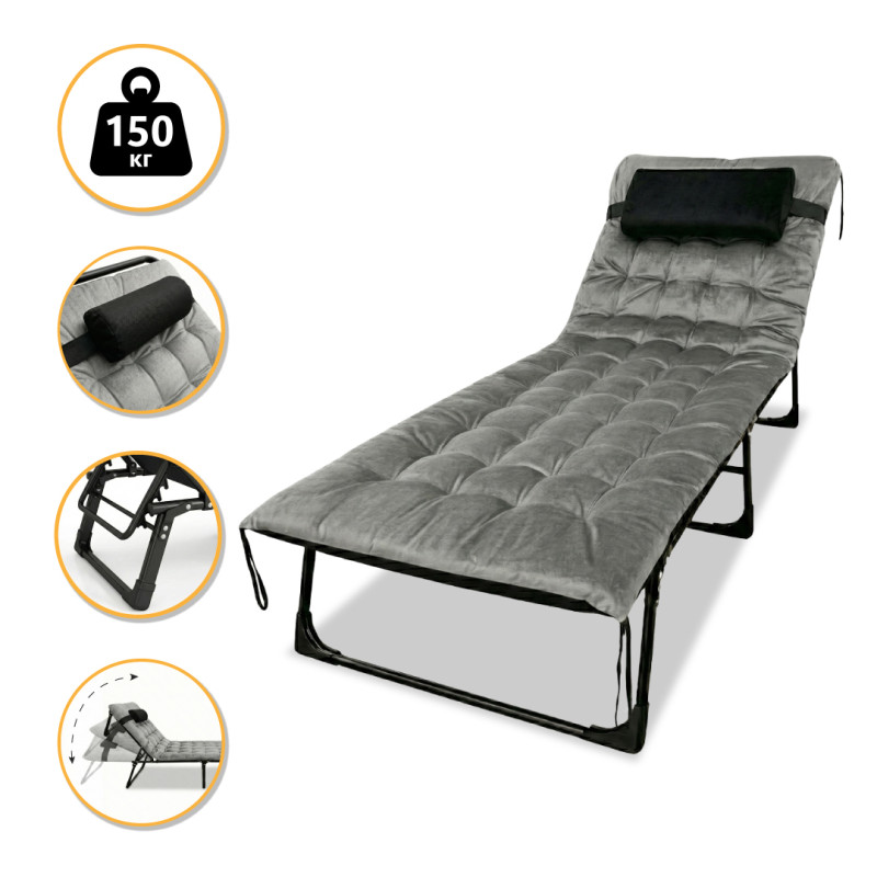 Розкладне ліжко (розкладачка) LEOBRO Black з оксамитовим матрацом та подушкою