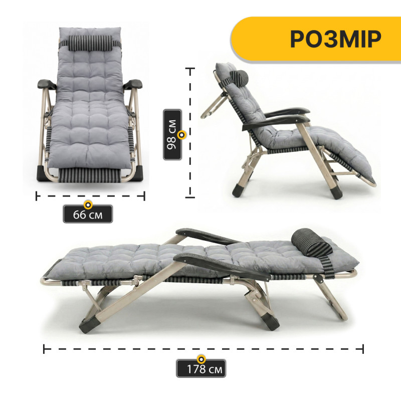 Купіть крісло-шезлонг LEOBRO у сірому кольорі з матрацом за привабливою ціною. Швидка доставка та гарантія якості від виробника зроблять вашу покупку приємною!