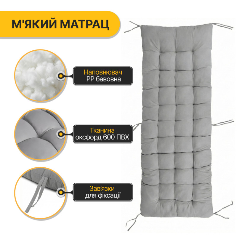 | Матеріал матраца | оксфорд 600 ПВХ з наповнювачем PP бавовна |