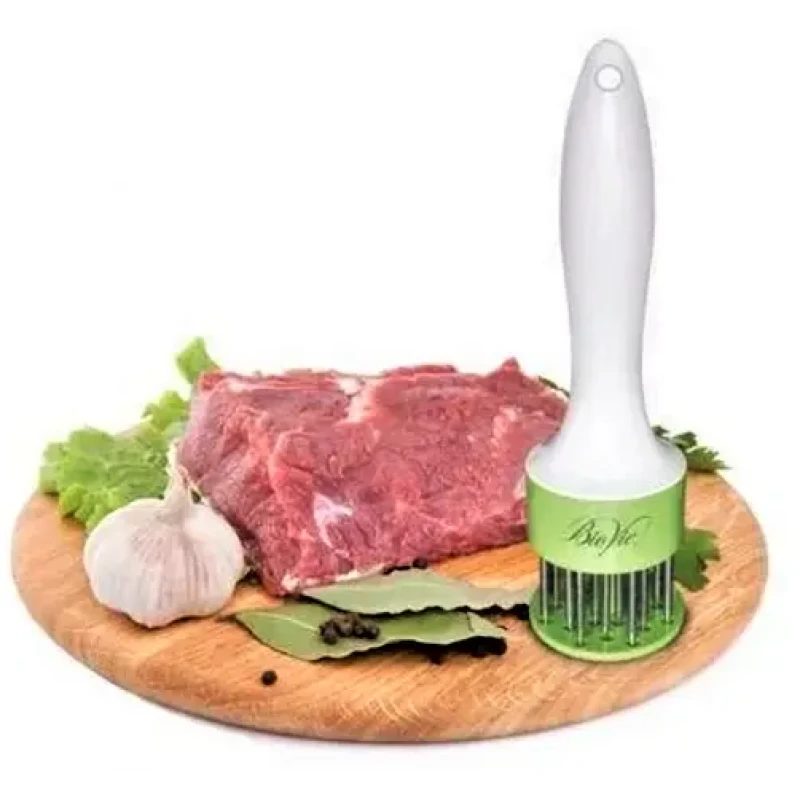 - Важливою перевагою тендерайзера є те, що розпушене за його допомогою м'ясо, краще зберігає свої смакові якості, залишаючись при смаженні м'яким та соковитим.