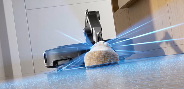 Завдяки технології FlexiArm, бічна щітка та швабра мають висувну конструкцію та прибирають впритул до стін, ефективно вимітаючи бруд із кутів, біля плінтусів та з-під меблів. Така конструкція гарантує всебічне прибирання без пропущених зон, забезпечуючи по-справжньому ретельне очищення всього будинку.