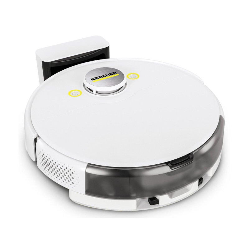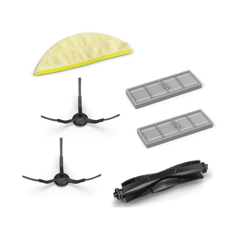 Робот-прибиральник KARCHER RCV 5 (1.269-640.0) , щітка для очищення, 2 х фільтр, 2 х бокова щітка, інструмент для чищення, 2 х ганчірка, бак для води, контейнер для пилу, зарядна станція, шнур живлення, документація.