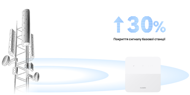 HUAWEI 4G CPE 5s працює на базі високопотужного користувацького обладнання (HPUE). Завдяки цьому сигнал залишається надійним навіть у сільській, гірській та промисловій місцевості, а також у підземних паркінгах. Покриття сигналу базової станції.