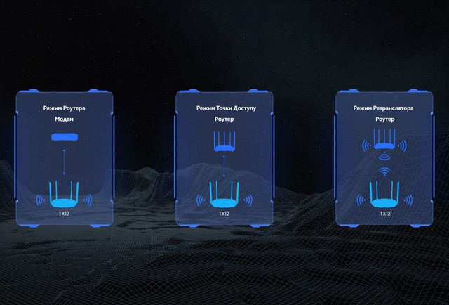 TX12 підтримує 3 режими: маршрутизатор, точка доступу та ретранслятор. Він простий в управлінні та може легко адаптуватися до різних сценаріїв роботи в інтернеті.