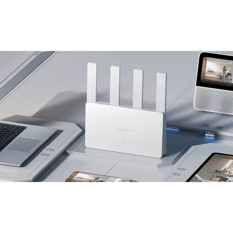 Роутер Xiaomi Wi-Fi 7 BE 3600 має стильний і компактний дизайн, який гармонійно впишеться в будь-який інтер'єр. На передній панелі роутера розташовані індикатор роботи та стану мережі, а на задній - кнопка Mesh, кнопка скидання, порти та антени. Роутер має чотири зовнішні антени з підсилювачами сигналу, які забезпечують широке покриття і стабільний прийом.