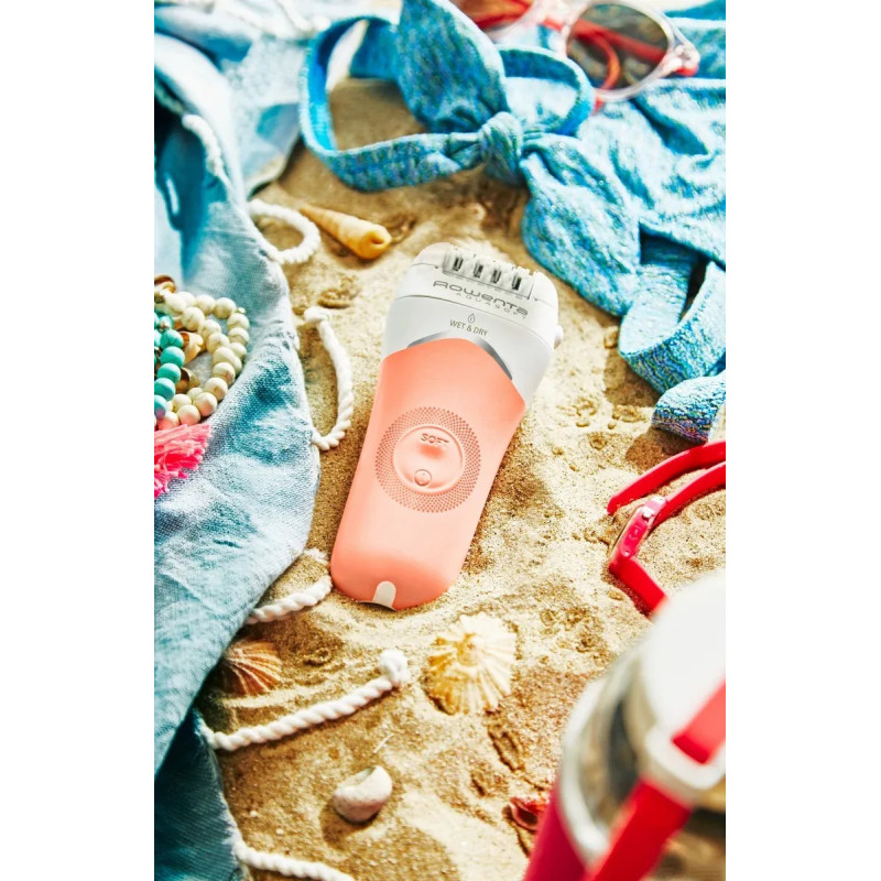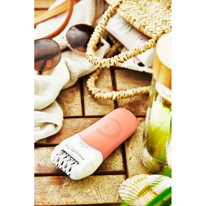 Видаляйте волосся дбайливо, швидко і без побічних ефектів з новим епілятором Rowenta Aquasoft. Завдяки запатентованій технології проти роздратування Anti-Irritation і спеціальному м'якому покриттю насадки епілятор ефективно видаляє волоски, не дратуючи шкіру. Корпус епілятора на 100% водонепроникний, тому пристрій можна використовувати як на сухій шкірі, так і під час прийняття душу або ванни, адже вода чинить додаткову заспокійливу дію на шкіру під час епіляції.