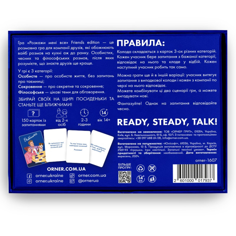 Ми створили розмовну гру «?Розкажи мені все! Friends edition», де картки з запитаннями задаватимуть правильний темп і настрій розмові в компанії друзів.