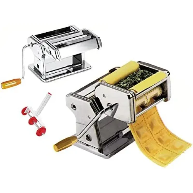 Лапшерізка Pasta Machine Set тестораскатка з насадкою для равіолі допоможе Вам самостійно приготувати дуже смачну локшину, макарони, спагетті, фетучіні та інші різновиди пасти у себе вдома, не прикладаючи до цього особливих труднощів. Підійде також для роботи із твердими сортами пшениці.
