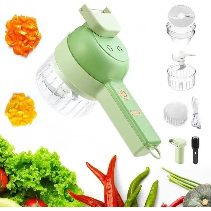 Ручний подрібнювач для овочів 4в1 Food Chopper / Електрична кухонна овочерізка / Міні блендер-слайсер